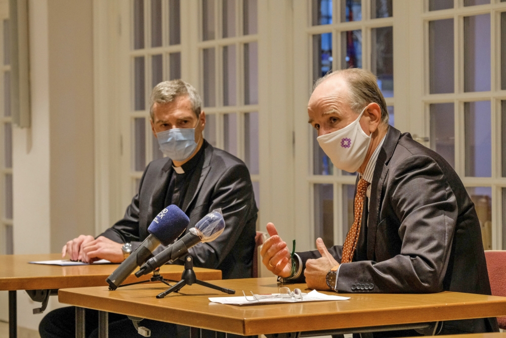 In einer gemeinsamen Pressekonferenz im Leibnizsaal der Neustädter Hof- und Stadtkirche in Hannover stellten Landesbischof Ralf Meister, zugleich Ratsvorsitzender der Konföderation der evangelischen Kirchen in Niedersachsen, und Dr. Heiner Wilmer, Bischof des Bistums Hildesheim, die Erklärung vor. „Die Corona-Pandemie ist eine gesundheitliche, soziale und ökonomische Katastrophe ungeahnten Ausmaßes“, sagte Bischof Wilmer zu Beginn. Die Stärke der Kirchen liege nun in der tatkräftigen Unterstützung von Menschen, die Hilfe benötigten, sowie der seelsorgerlichen Begleitung.