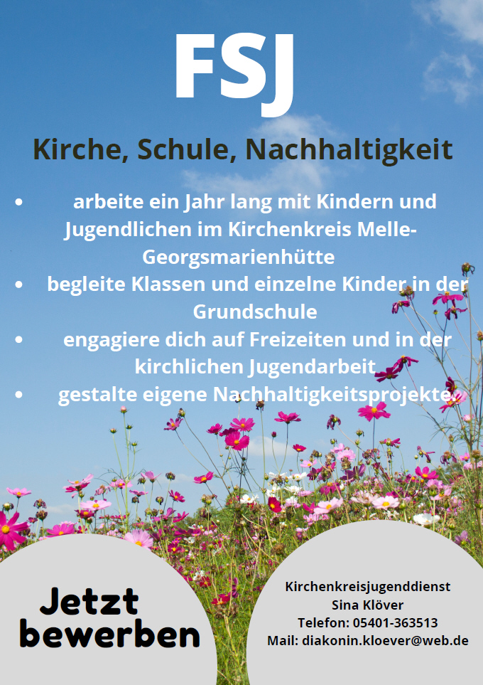 Der Kirchenkreis Melle-Georgsmarienhütte bietet für Interessierte zwischen 18 und 27 Jahren ein Freiwilliges Soziales Jahr (FSJ) an, das im Bereich der Arbeit mit Kindern und Jugendlichen in jeweils einer Kirchengemeinde und der dazugehörigen Grundschule absolviert werden kann. Einsatzstellen sind unter anderem Bad Laer–Glandorf, Bad Rothenfelde und Hilter.