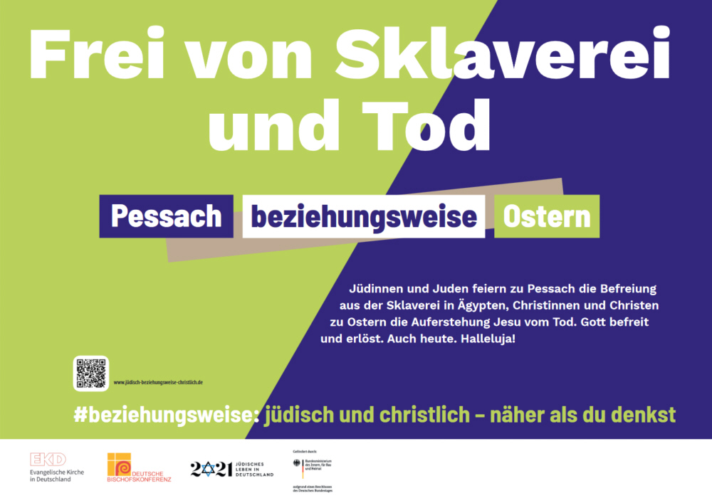 Die ökumenisch verantwortete Kampagne „#beziehungsweise: jüdisch und christlich – näher als du denkst“ nimmt die Beziehungen von Christentum und Judentum in den Blick. Sie richtet ihn dabei auf die Feste, bei denen die Verwurzelung des Christentums im Judentum deutlich wird. Durch das Jahr hindurch steht jeden Monat ein besonderes Fest im Fokus. Dazu gibt es an jedem dritten Dienstag im Monat ein Gespräch zwischen Vertreter*innen aus dem Judentum und dem Christentum. Die Online-Teilnahme ist für jede*n möglich.