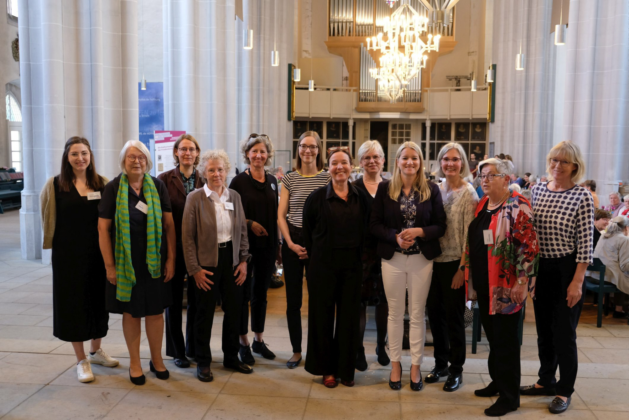 „Ein schöner Abend voller Frauenpower“ – so das Fazit von Justizministerin Dr. Katharina Wahlmann, die als eine von drei Tischrednerinnen beim Frauenmahl am 6. Juli in St. Katharinen in Osnabrück sprach. 150 Frauen waren der Ökumenischen Einladung gefolgt, die unter dem Motto „Frauen an den Tisch – Impulse – Essen – Ermutigung“ stand. Anlass war das Stadtjubiläum 375 Jahre Westfälischer Frieden. „Wir suchen immer einen besonderen Anlass, um ein solches Mahl auszurichten. Dass wir zum Gedenken an den Friedensschluss von 1648 ökumenisch einladen, war für uns klar“, sagt Rita Steinbreder, Referentin der Evangelischen Frauen* beim Haus kirchlicher Dienste der Landeskirche Hannovers.