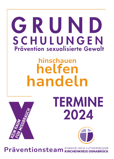 Auf der Website des Evangelisch-lutherischen Kirchenkreises Osnabrück wurden jetzt die Termine für die Grundschulungen zur Prävention gegen sexualisierte Gewalt veröffentlicht. Auch eine Online-Anmeldung ist für die insgesamt zehn Termine in diesem Jahr eingerichtet. Das Präventionsteam im Kirchenkreis Osnabrück setzt sich derzeit aus vier Mitgliedern zusammen, die die verpflichtenden Schulungen für haupt- und ehrenamtlich Mitarbeitende im Kirchenkreis Osnabrück anbieten.