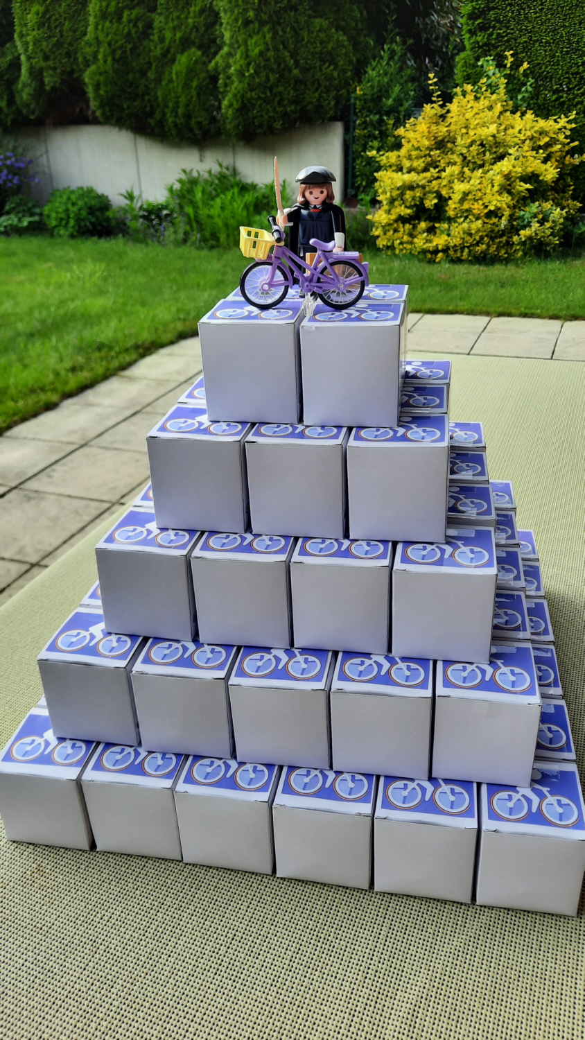 Als die Fahrradklingeln mit dem Kirchenkreis-Logo angeliefert wurden, waren sie bereits einzeln verpackt in würfelförmigen Pappkartons. „Sonst hätten wir sie in kleinen Beuteln verpackt, und alle Teilnehmenden hätten ihren persönlichen Klingelbeutel erhalten“, sagt Frank Waniek mit einem Augenzwinkern.