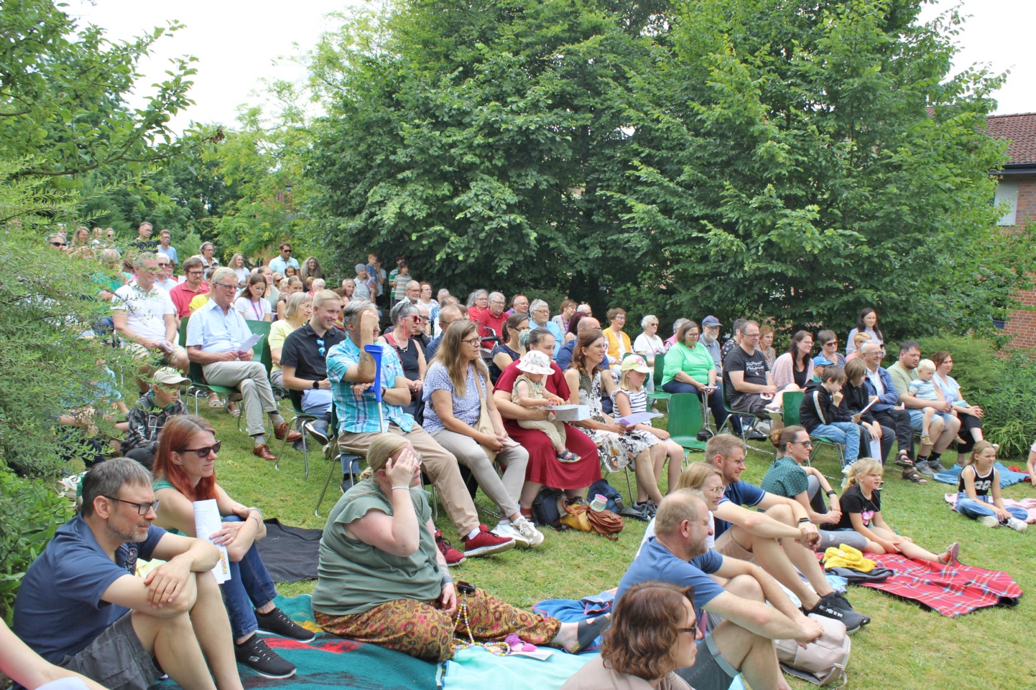 Eröffnet wurde das Gemeindefest bei strahlendem Sonnenschein durch einen Gottesdienst mit Pastor Martin Steinke im Freien; die Stuhlreihen füllten sich zügig. Vor dem aufgebauten Altar wurden Picknickdecken ausgelegt, auf denen die Kinder der Andreas-Kita Platz fanden. Musikalisch gestaltet wurde der Open-Air-Gottesdienst vom Andreas-Chor unter Leitung von Insa Zimni. Die Kinder der Andreas-Kita, die seit 1992 in Hollage-Ost besteht, haben ebenfalls musikalische Beiträge vorbereitet und mit viel Freude vorgeführt.