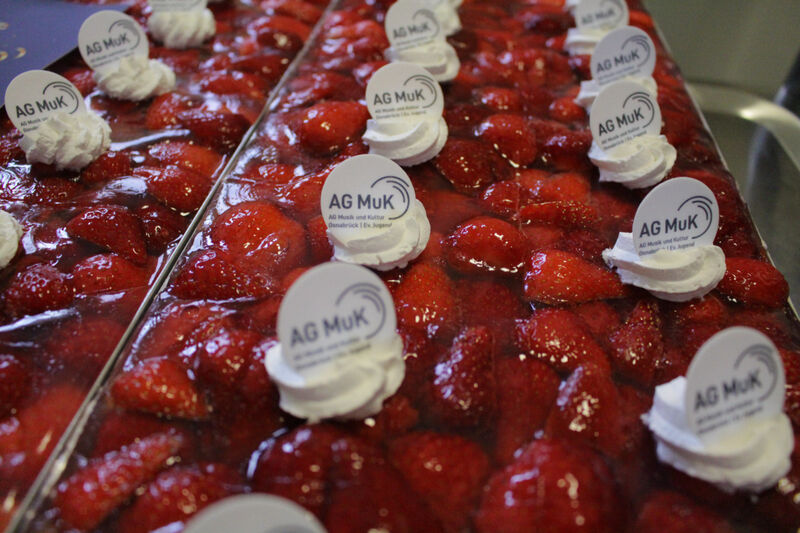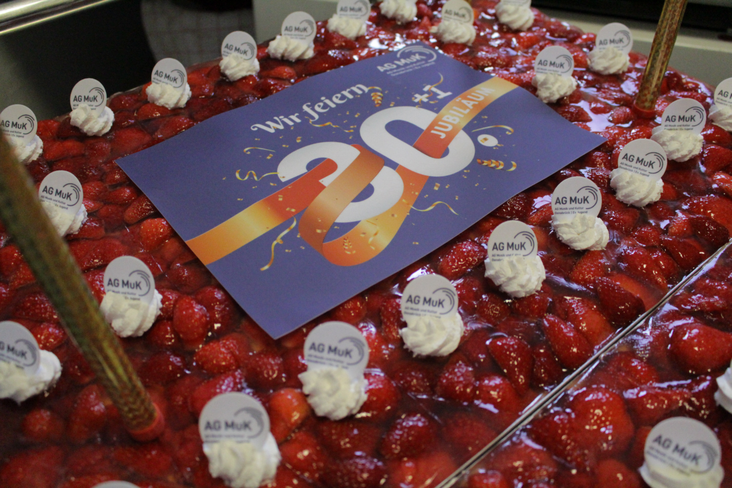 Der kulinarische Höhepunkt im Anschluss an das Bühnenprogramm war die Geburtstagstorte, die ein Ehrenamtlicher selbst gebacken hatten. Die Besucher*innen hatten Gelegenheit, neben Speis und Trank alte und neue Freundschaften zu pflegen, ein Erinnerungsfoto in der Fotobox zu machen oder die Ausstellung mit Bildern und Requisiten aller bisherigen Stücke anzuschauen. Am Ende des Tages freuten sich alle „Auf die nächsten 30(+1) Jahre AG MuK“.
