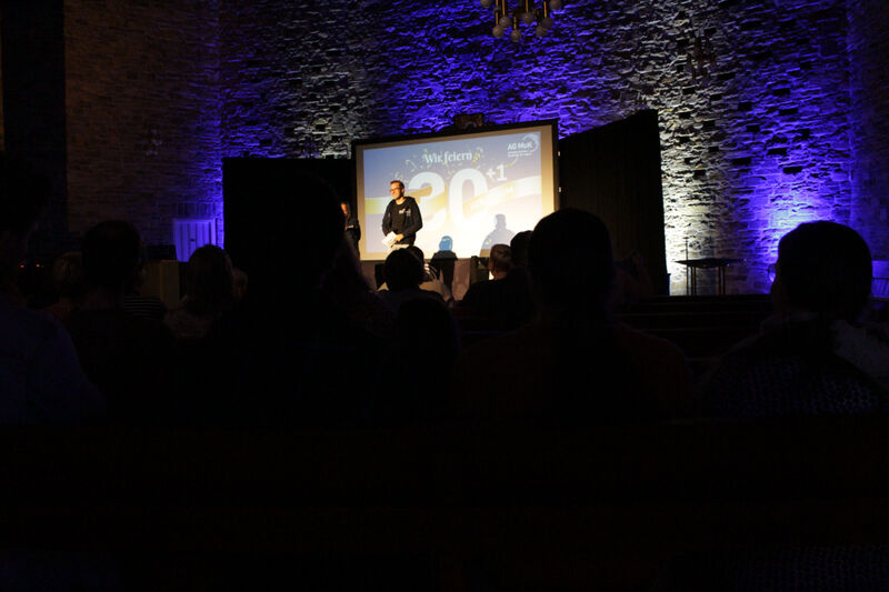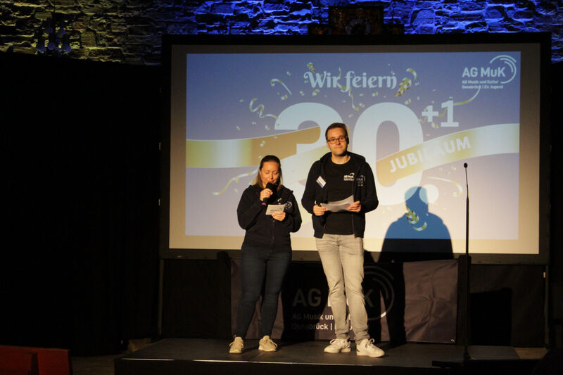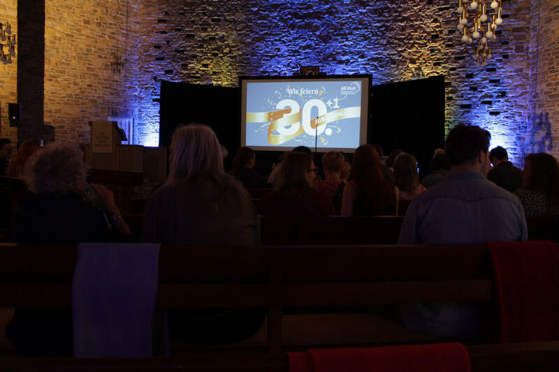 Rund 50 Aktive, Ehemalige und Wegbegleitende der AG MuK waren bei der Feier in der Markuskirche dabei, wo sich das Team nach vielen Umzügen innerhalb des Kirchenkreises „sauwohl“ fühlt, so Sebastian Loske. Die Gäste erlebten ein vielfältiges Programm, das das Jubiläums-Team gestaltete. Dazu gehörte auch, ein angemessenes Auftritts-Flair mit Bühne, Leinwand und professioneller Beleuchtung zu geben.