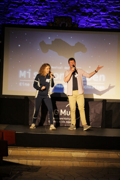 In einem interaktiven Quiz wurden Wissen und Glück des Publikums mit einem zwinkernden Auge auf die Probe gestellt. Als besonderes Highlight wurden drei Songs aus verschiedenen Musicals live dargeboten – gesungen und gespielt von den „Original“-Musiker*innen. Belohnt wurde dies mit tosendem Applaus. Auch Micha Keding, Mitbegründer und Wegbegleiter, ließ es sich nicht nehmen, der AG MuK per Videogrußbotschaft zu gratulieren.