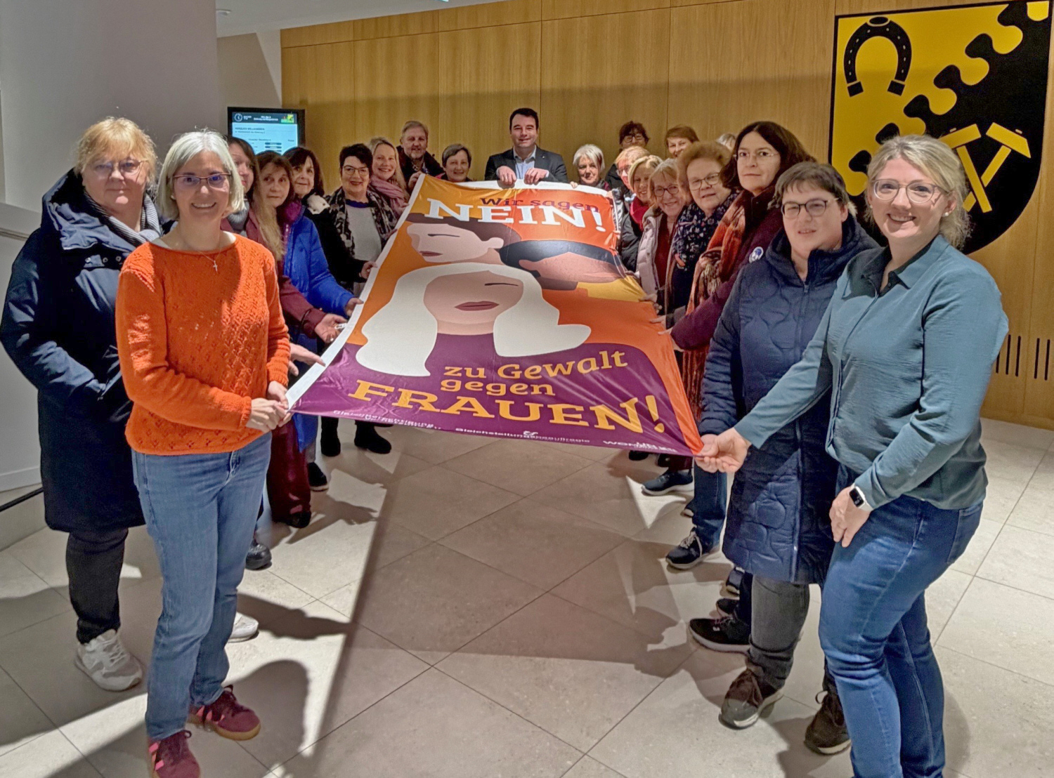 Vor dem Rathaus wurde die Fahne „Wir sagen NEIN! zu Gewalt gegen Frauen!“ gehisst – als sichtbares Zeichen für Solidarität und Schutz. Bereits im vergangenen Jahr wurden im Ortskern zwei orangefarbene Bänke aufgestellt – eine vor dem Rathaus und eine vor der evangelischen Kirche. Beide tragen gut sichtbar die wichtigsten Telefonnummern, an die sich Betroffene oder Angehörige wenden können. In diesem Jahr gesellt sich ein orangefarbener Stuhl für die katholische Kirche sowie ein neuer symbolischer „Wander-Stuhl“ hinzu, der künftig an unterschiedliche Einrichtungen verliehen werden kann.