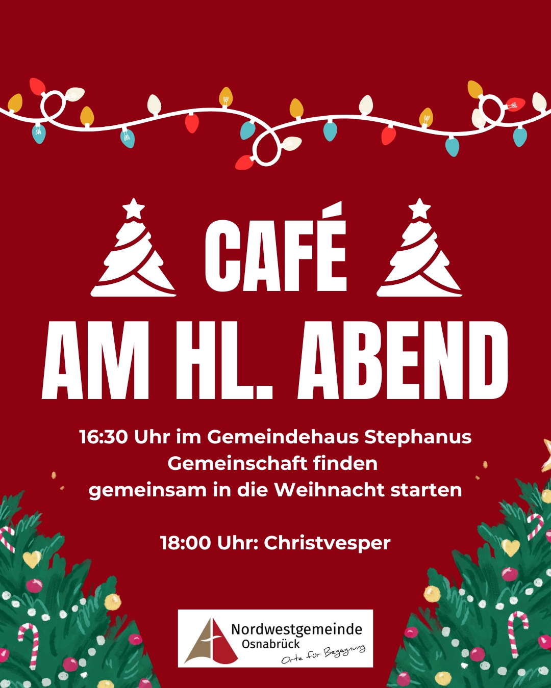 Die Evangelisch-lutherische Nordwestgemeinde lädt am Mittwoch, 24. Dezember, von 16.30 Uhr bis 18 Uhr zum „Café am Heiligabend“ in das Gemeindehaus Stephanus, Stephanusweg 2, 49076 Osnabrück, ein. Um 18 Uhr beginnt die Christvesper in der Stephanuskirche. „Bereits zum dritten Mal freuen wir uns auf Gäste aller Altersgruppen, um mit einer Kaffeetafel gemeinsam in die Weihnacht zu starten. Anmeldungen nimmt das Gemeindebüro entgegen und sie erleichtern die Planung. Auch spontane Besucher*innen sind aber herzlich willkommen“, sagt Pastorin Dr. Jutta Tloka. Das Gemeindebüro ist erreichbar unter Telefon 0541 6090209 oder per E-Mail (nordwestgemeinde.osnabrueck@evlka.de).
