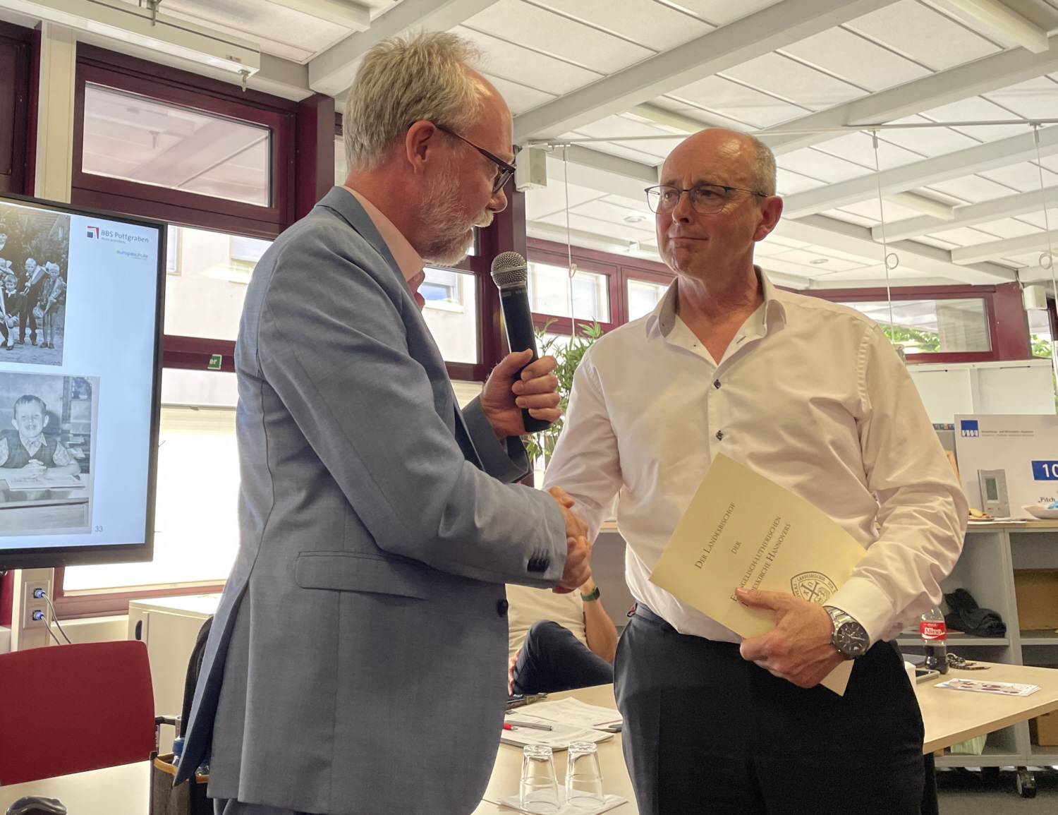 Marks-von der Born: Siebeneinhalb Jahre. Danach wechselte ich im Sommer 1999 in das Gemeindepfarramt der Osnabrücker Jakobusgemeinde in Schinkel-Ost. Dort habe ich ebenfalls sehr gerne gearbeitet. Die Gemeinde ist lebendig. Gemeinsam mit dem Kirchenvorstand und den Mitarbeitenden in Kindergarten und Gemeinde habe ich zum Beispiel die Erweiterung und den Ausbau der Betreuungszeiten in der Kita unterstützt. Außerdem konnte ich in der Gemeinde, die eine überschaubare Größe hat und in einem kleineren Stadtteil liegt, viel Beziehungsarbeit machen. So entstand schnell das Gefühl: „Ich gehöre zum Stadtteil und zu den Menschen hier“. Im Sommer 2012 wurde mir vom damaligen Superintendenten die Stelle an den BBS am Pottgraben angeboten. Nach ein wenig Überlegungszeit habe ich dieses Angebot schließlich angenommen und bin zurück in die Schule gegangen.