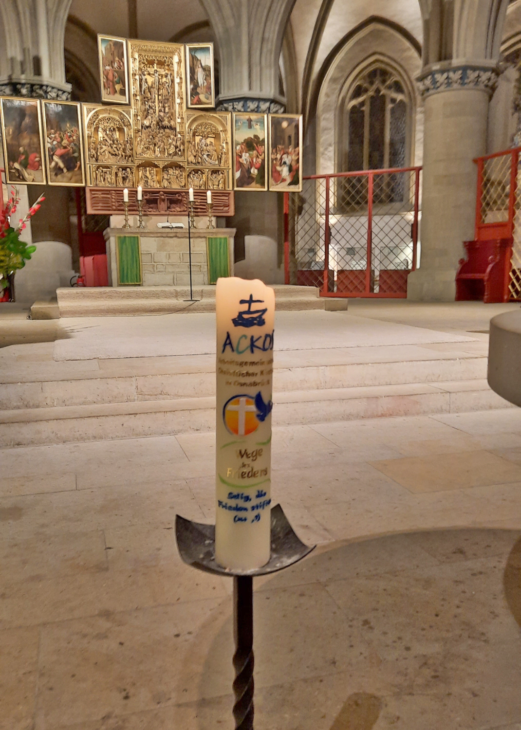 In dem Gottesdienst mit Preisverleihung, Erinnerung an die Grundlagen unserer Zivilisation und Einführung des neuen „Friedenspastors“ schloss sich zudem ein Kreis: Die Friedenskerze, welche die ACKOS ein Jahr zuvor in der Bergkirche auf die Reise durch die Kirchengemeinden geschickt hatte, wurde ein letztes Mal entzündet. Mitglieder der Neuapostolischen Kirche, wo sie die Woche zuvor im Gottesdienst brannte, brachten sie herein. Auf der Website der ACKOS findet sich eine Bildergalerie der ökumenischen Friedenskerze in den einzelnen Gemeinden.