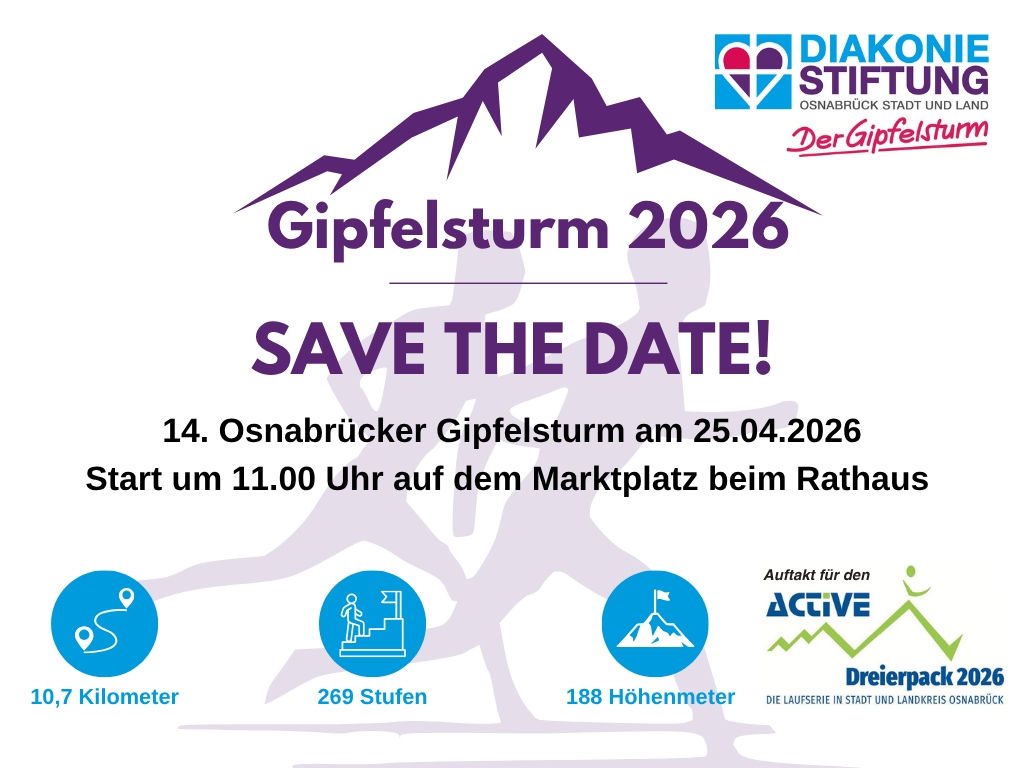 Am Samstag, 25. April, ist es wieder soweit: Der Osnabrücker Gipfelsturm verwandelt die Stadt in ein sportliches Großereignis. Auch in seiner 14. Auflage ist die Begeisterung für den Benefizlauf der DiakonieStiftung Osnabrück Stadt und Land ungebrochen – das zeigt sich nicht zuletzt an der Rekord-Anmeldezahl nach wenigen Wochen.