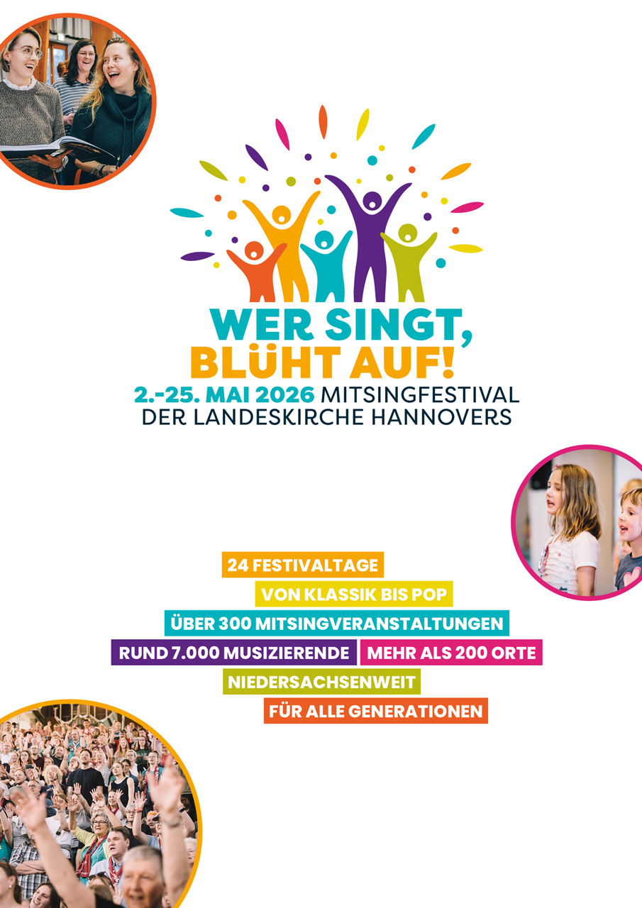 Die Landeskirche Hannovers veranstaltet zum ersten Mal ein „Mitsingfestival“. Es findet vom 2. bis 25. Mai 2026 in allen Regionen der Landeskirche unter dem Motto „Wer singt, blüht auf!“ statt.