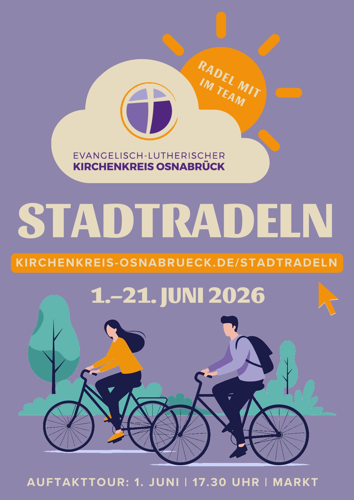 In der Zeit vom 1. bis 21. Juni ist in diesem Jahr in Osnabrück wieder STADTRADELN – auch der Evangelisch-lutherische Kirchenkreis Osnabrück ist zum siebten Mal mit einem Team dabei. In den drei Wochen wollen wir möglichst viele Kilometer erradeln und dabei das Klima schonen. Im letzten Jahr hat der Kirchenkreis den neunten Platz erreicht: 61 aktive Radelnde aus allen Kirchengemeinden und Einrichtungen haben insgesamt 12.169 km zurückgelegt – und dabei im Vergleich zur Fahrt mit dem Auto rund 2 t CO2 gespart.