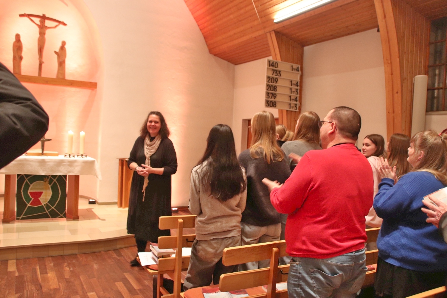 Viele Aktivitäten nahmen Fahrt auf unter Leys Verantwortung. So entstand eine neue Jugendküche in der Arche in Lechtingen, fanden Lesenächte, Lego-Bautage und Übernachtungen in der Kirche statt, führten Jugendfreizeiten nach Schweden oder es wurde Karneval gefeiert. „Dein Engagement ist vielfältig, du hast das Herz am richtigen Fleck und du kannst sehen, was die Menschen brauchen“, sagte Dr. Lüder Meyer-Stiens, Pastor in der Paul-Gerhardt-Gemeinde. Bettina Ley sei eine Zauberin, befanden Diakon Udo Ferle und Julien Möller aus der Andreasgemeinde. „Du hast es geschafft, in relativ kurzer Zeit viele schöne ‚Weißt du noch‘-Momente zu zaubern. Wollten wir alle aufzählen, müssten Sie die Schlafsäcke auspacken“, sagte Ferle an die Besucher in der Kirche gerichtet. Pastor Martin Steinke aus der Andreasgemeinde predigte über den Konfirmationsspruch von Bettina Ley, den sie nicht selbst, sondern der Pastor ihrer damaligen Heimatgemeinde ausgesucht habe. „Er hat wohl geahnt, wohin dein Weg dich führen wird“, meinte Steinke und verwies auf Psalm 73, Vers 28: Aber das ist meine Freude, dass ich mich zu Gott halte und meine Zuversicht setze auf Gott den Herrn, dass ich verkündige all dein Tun. Nach der Predigt sang Insa Zimni, die Schwester von Bettina Ley und Chorleiterin der Andreasgemeinde, das Lied „Nah bei dir“.