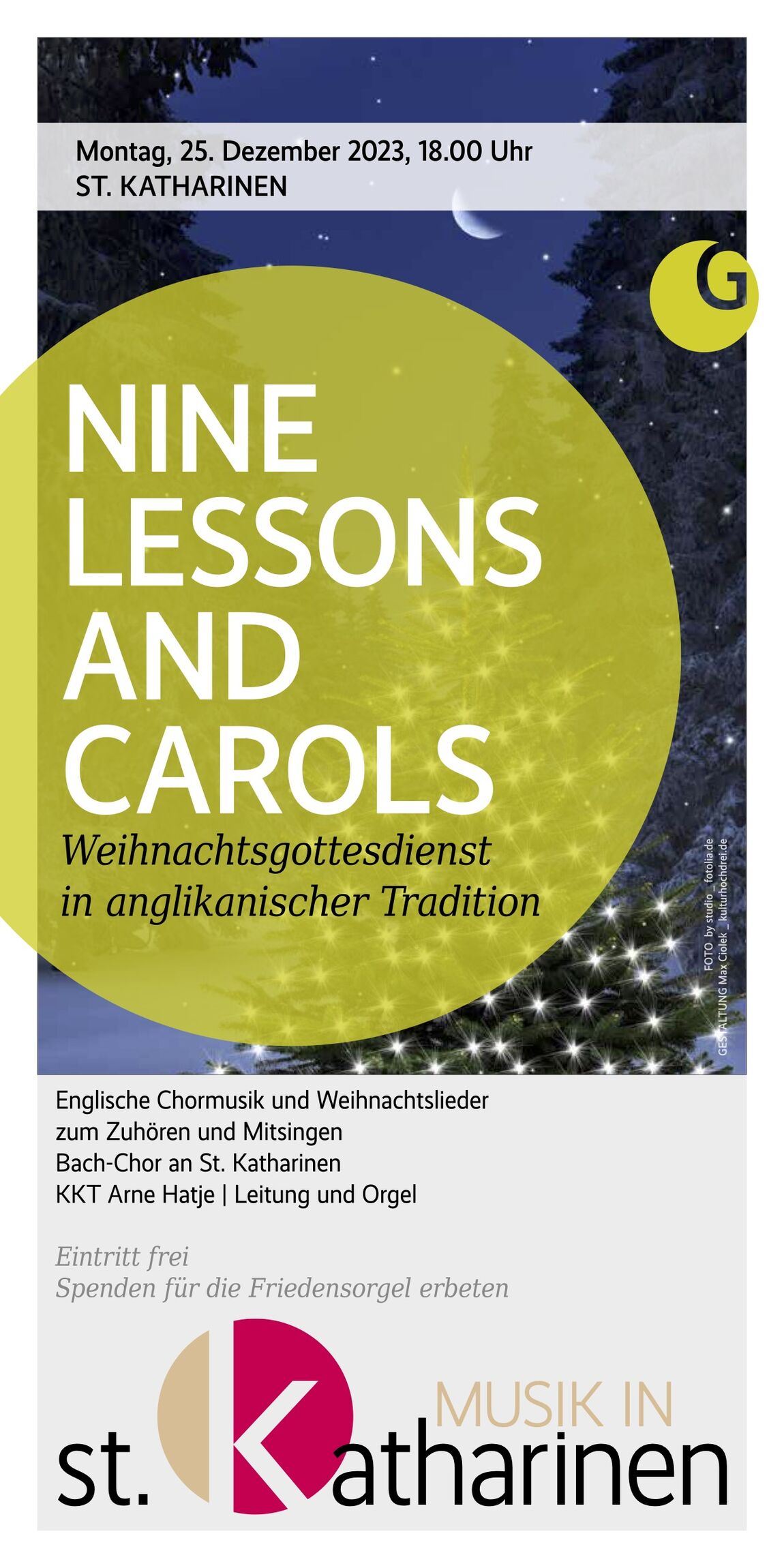 Ein Weihnachtsgottesdienst in anglikanischer Tradition beginnt am Montag, 25. Dezember, um 18 Uhr in der Evangelisch-lutherischen St.-Katharinen-Kirche, An der Katharinenkirche, 49074 Osnabrück. Unter dem Titel „Nine lessons and carols“ wird der Bach-Chor an St. Katharinen zu hören sein. An der neuen Friedensorgel spielt Kirchenkreiskantor Arne Hatje. Die englische Weihnachtsliedertradition ist weltweit ein Schlager, der die Konzerthäuser und Kirchen füllt. Die besondere Form der Kombination von Liedern, Lesungen und inhaltlich passenden Chorstücken und die Einbettung des Ganzen in eine liturgische Abfolge macht aus einer nur konzertanten Reihung von Chorstücken einen feierlichen Weihnachtsgottesdienst mit quasi Konzertcharakter. Der Ablauf der „Nine lessons“ in St. Katharinen wurde angepasst, so dass die englische Chormusik, deutsche und englische geistliche Weihnachtslieder mit den vorgegebenen Lesungen in deutscher Sprache kombiniert sind.