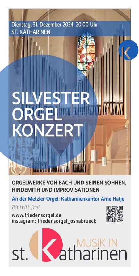 Am Dienstag, 31. Dezember, beginnt um 20 Uhr in der St.-Katharinen-Kirche das traditionelle Orgelkonzert am Silvesterabend. Kirchenkreiskantor Arne Hatje spielt Werke von Johann Sebastian Bach und dessen Sohn Carl Philipp Emanuel. Außerdem stehen die zweite Orgelsonate von Paul Hindemith sowie Improvisationen auf dem Programm. Nach dem Konzert gibt es einen Umtrunk, um das Jahr 2024 Revue passieren lassen zu können.