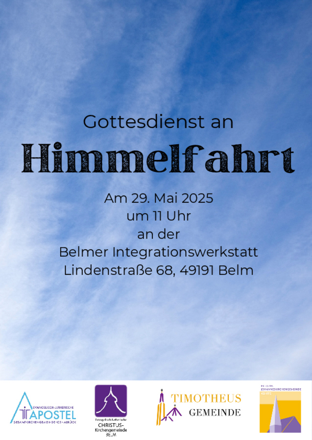 Die Paulusgemeinde feiert am Donnerstag, 29. Mai, um 10 Uhr einen Himmelfahrtsgottesdienst in der Pauluskirche, An der Pauluskirche 1, 49084 Osnabrück.