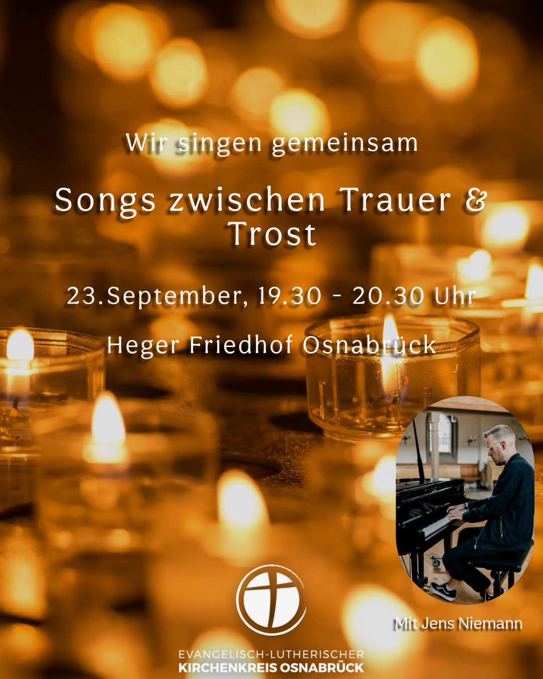 Alle sind zum Singen mit Popkantor Jens Niemann eingeladen, denn Singen ist gesund, macht gute Laune und kann trösten. Eine leuchtende Kerze und eine liebevolle Karte begleiten zurück in den Alltag. Vor und nach der Veranstaltung steht Pastor Thomas Herzberg für Fragen rund um Trauer, Abschied und Gestaltung von Beerdigungen zur Verfügung.