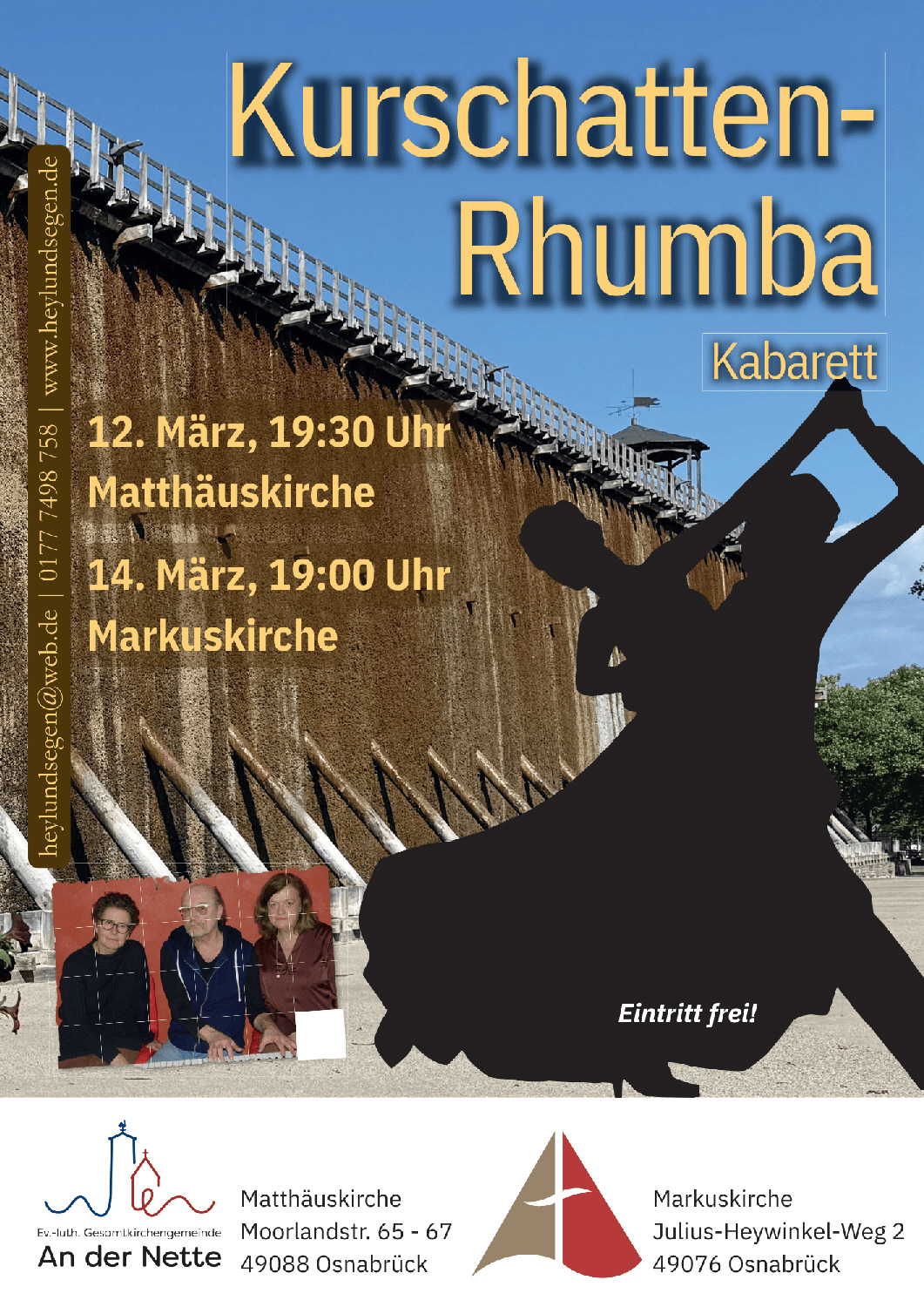 Am Donnerstag, 12. März, um 19.30 Uhr lädt die Evangelisch-lutherische Gesamtkirchengemeinde An der Nette zum Kabarett mit dem Ensemble Heyl&Segen in die Matthäuskirche, Moorlandstraße 65–67, 49088 Osnabrück, ein.